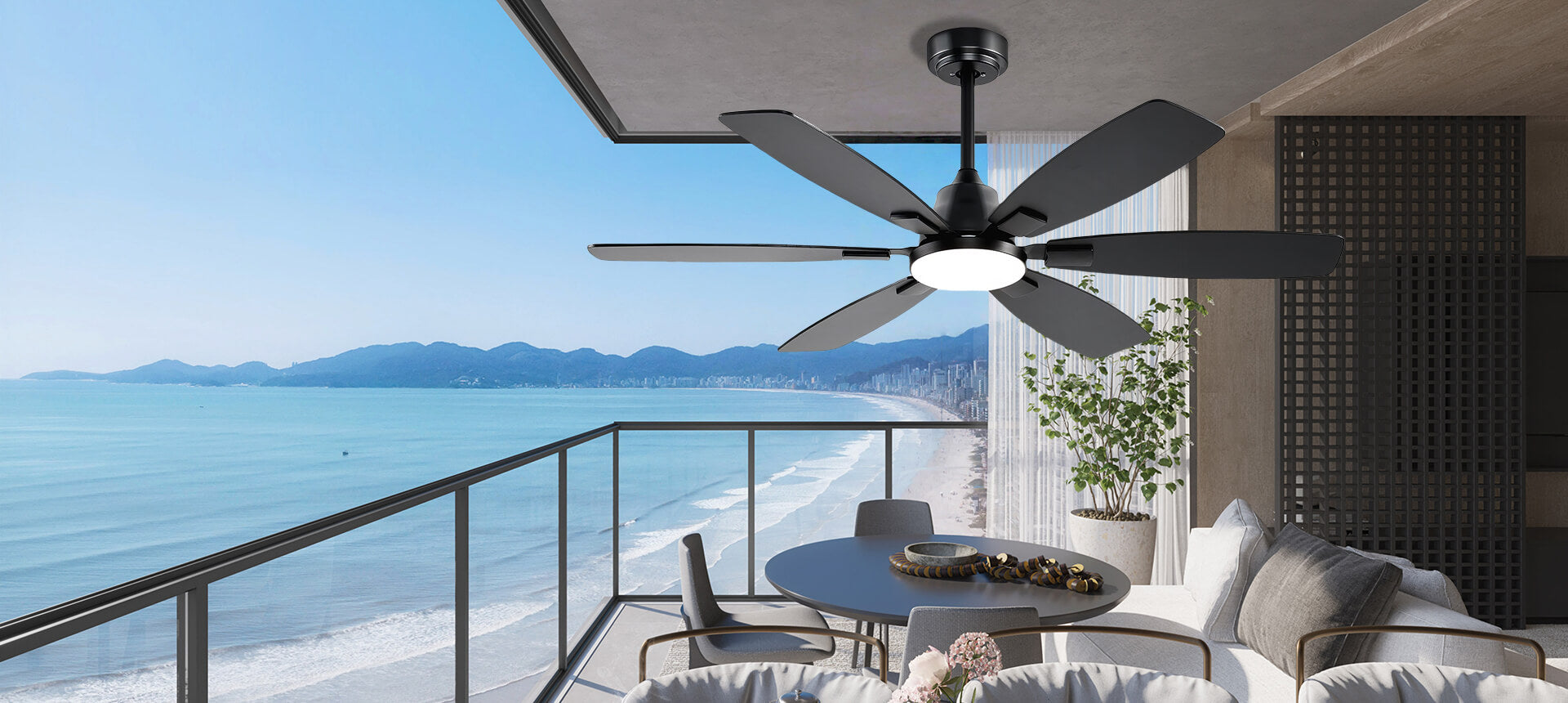 This 52-inch modern ceiling fan blends sleek black style with powerful airflow.